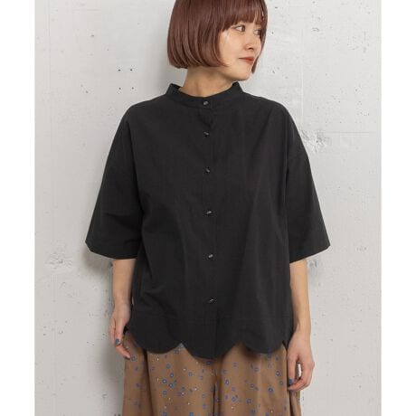 人気のブラウスが今年も登場。裾の大胆なスカラップがPOU DOU DOUらしいデザインです。肩が落ちたゆとりのある袖と、ひじにかかる袖丈が腕まわりをカバーし、リラックスした雰囲気で着られます。前後どちらを前にしても着用できる2way仕様。フルオープンにして羽織りとしてもお使いいただけます。着回しやすく、柄ボトムスとも相性の良いオフホワイトとブラックの無地に加え、ギンガムやストライプの定番柄もおすすめです。