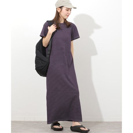 ◆細かいピッチのボーダーが大人カジュアルな印象を演出するカットソーワンピース。