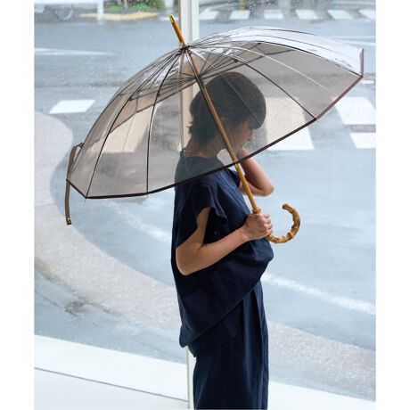 デイリーな印象のビニール素材にクラシックなバンブーハンドルを掛け合わせることで、上品でモダンなビニール傘へと昇華。