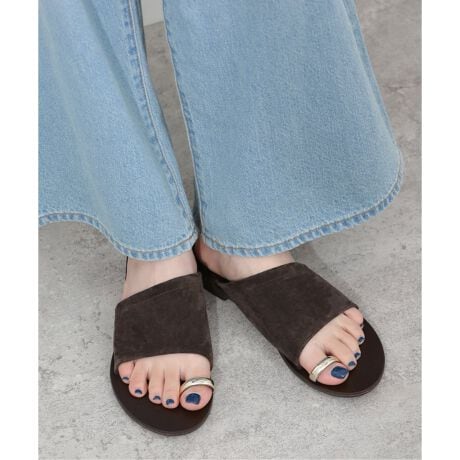 ◆サムリングデザインが印象的なフラットサンダル。