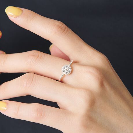 立体的なサークルの中に、ジルコニアを散りばめたリング。