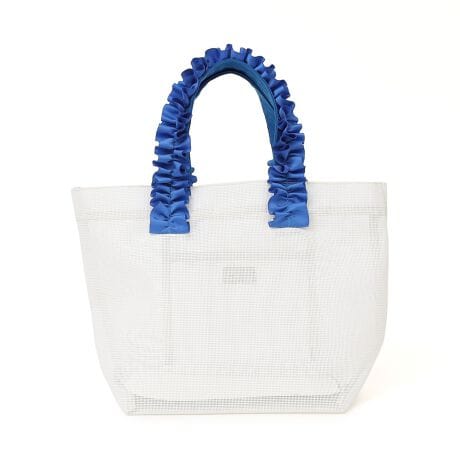 フリルデザインの持ち手が目を惹くトートバッグ。