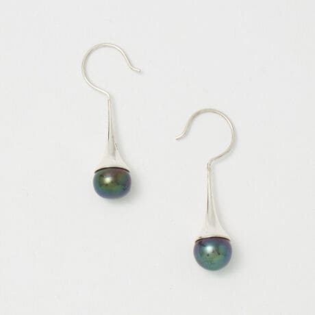 耳元でさりげなく揺れ、シルバーと淡水パール独特の輝きが品のある印象に導きます。