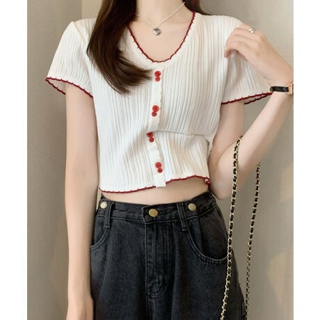 マルイウェブチャネル   /   トップス   /   カーディガン   /   配色メロウリブニット半袖カーディガントップス