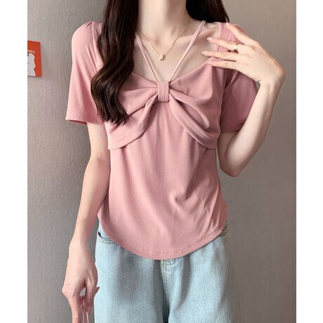 フロントリボンストラップデザインコンパクトTシャツ