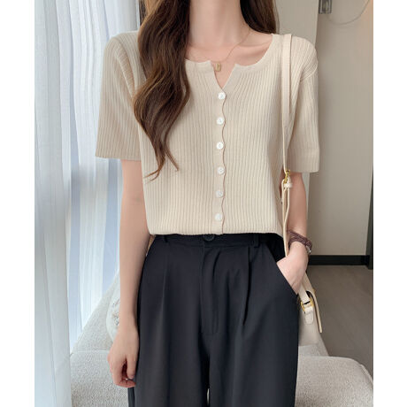 首元に抜け感を演出するキーネックデザインで女性らしい華奢な印象に。