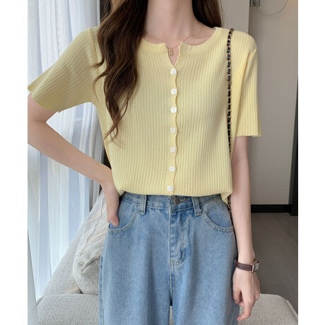 首元に抜け感を演出するキーネックデザインで女性らしい華奢な印象に。