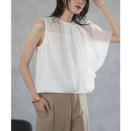 昨年大人気だったアシンメトリーブラウスがシアー素材になって新登場。