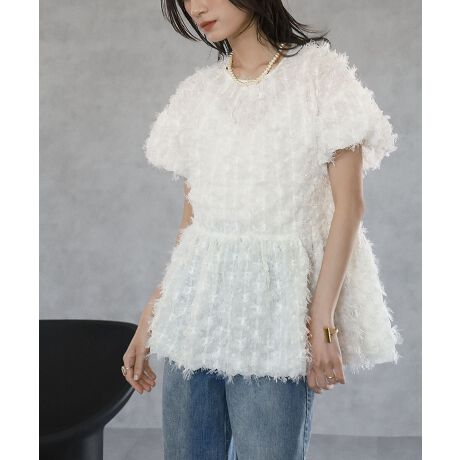 ウエスト下からふんわりと広がるシルエットが動くたびに揺れる大人かわいいトップスです。