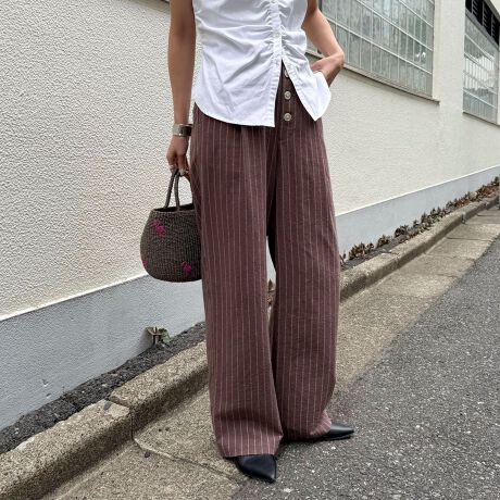 軽やかな印象に仕上がるストライプタックパンツ
