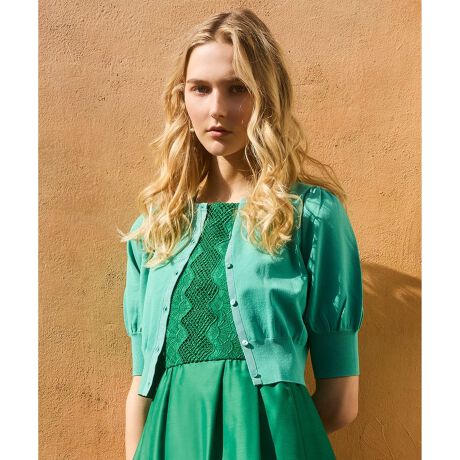 軽やかな着心地と上品な華やかさを併せ持つ、定番ニットカーディガン。