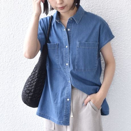 《予約》SHIPS Colors:〈洗濯機可能〉ファンクション デニム フレンチスリーブ シャツ◆