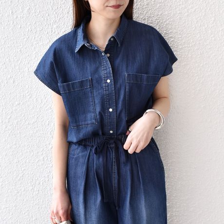 コットンベースでさらりとした薄手のデニム生地を使用。
