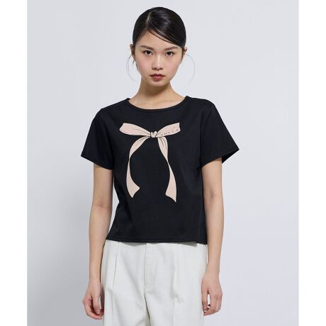 フロントにあしらわれたリボンモチーフが印象的な、大人フェミニンな半袖Tシャツ。甘くなりがちなリボンデザインを、シャープなラインと落ち着いた配色で表現することで、上品で洗練された印象に仕上げました。リボンは立体感のあるプリントで描かれ、結び目から垂れるラインが縦のシルエットを強調し、すっきりと見せてくれます。リボンの中にはトッカのロゴが入っており、主張しすぎず控えめなアクセントに。ベーシックなクルーネックと程よくコンパクトなサイズ感で、ジャケットやカーディガンのインナーとしても相性抜群。カジュアルなデニム合わせはもちろん、スラックスやタイトスカートと合わせれば、きれいめな大人コーデにも対応します。