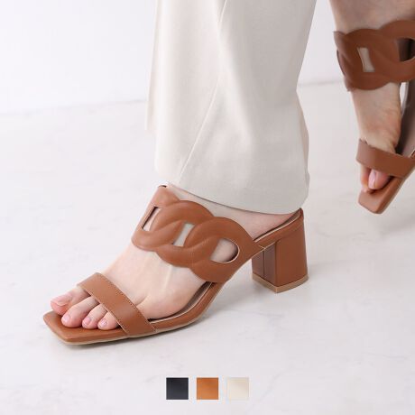 【26春夏新作】スクエアトゥカットワークミュールサンダル
