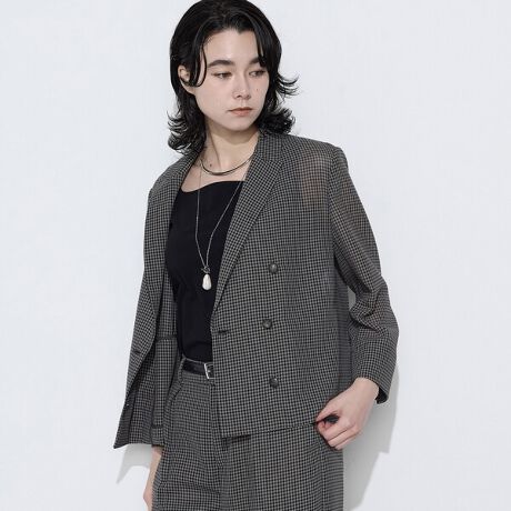 クラシカルなツイードから取ったコムサオリジナルカラーのからみチェックとメタル調釦で夏でもトラッドなスタイリングを叶えます。