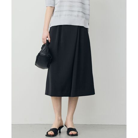 ■デザイン膝下レングスが新鮮な、トレンド感のあるニーショーツです。スカートのような分量感と、アシンメトリーなラップ風デザインがポイントです。ウエスト後ろ部分はゴム仕様で、ストレスフリーな着心地も魅力。ベーシックなアイテムと合わせるだけで今シーズンらしいバランスが完成し、スタイリングにアクセントをプラスする一枚です。