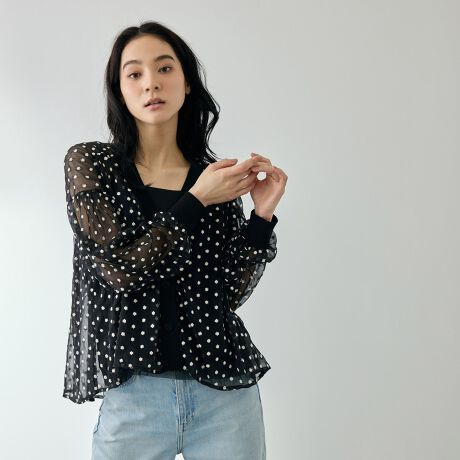 また、バックヨーク部分にはギャザーを寄せてバックフレアシルエットに。
