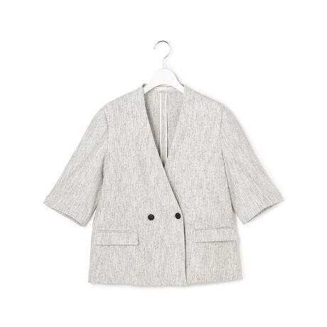 ■デザインすっきりとした印象を与える、ノーカラーデザインの半袖ジャケットです。首元の抜け感が女性らしさを引き立て、合わせるインナーを選ばず幅広いスタイリングにマッチします。軽やかな半袖仕様で、春から夏シーズンにぴったりの一枚です。きちんと感のあるシルエットながらリラックスした着心地も魅力で、オンオフ問わず活躍すること間違いなし。パンツにもスカートにも合わせやすく、羽織るだけで上品な大人スタイルを完成させてくれる万能アイテムです。