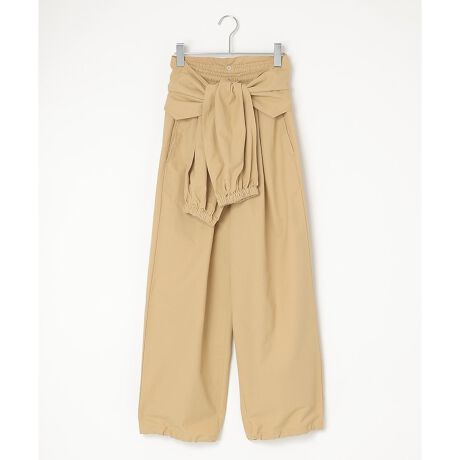 トップスを腰に巻いたようなディテールが目を引くジョガーパンツ。