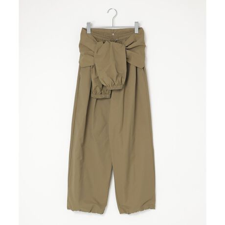 トップスを腰に巻いたようなディテールが目を引くジョガーパンツ。