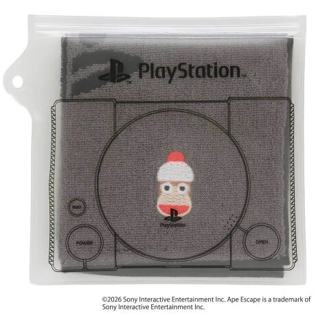 「サルゲッチュ」シリーズの「ピポサル」をワンポイント刺繍したタオルハンカチです。初代プレイステーションをイメージしたクリアケースが付いており、ちょっとしたギフトにもおすすめです。