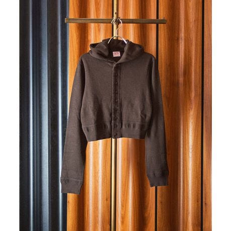 ショート丈とフードのバランスが新鮮で、スタイリングの幅を広げてくれるカーディガンです。