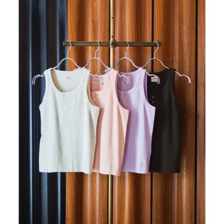 ヘンリーネックの抜け感が程よく効いていて、1枚でもレイヤードでも使いやすいタンクトップです。