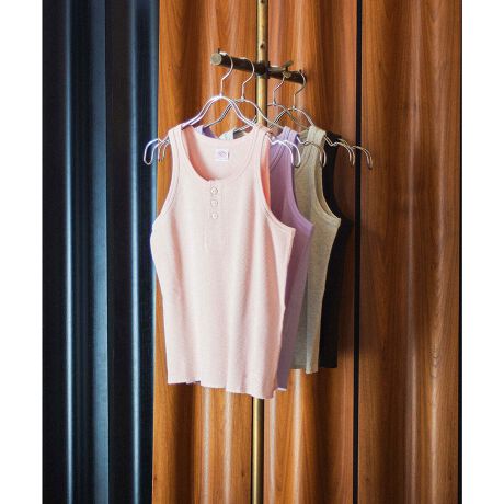ヘンリーネックの抜け感が程よく効いていて、1枚でもレイヤードでも使いやすいタンクトップです。