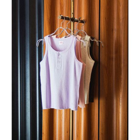 ヘンリーネックの抜け感が程よく効いていて、1枚でもレイヤードでも使いやすいタンクトップです。