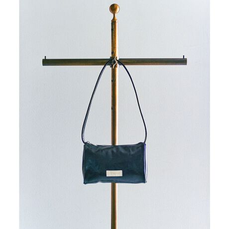 艶感のある素材とフロントのブランドネームがポイントになり、幅広いスタイリングに取り入れやすいバッグです。