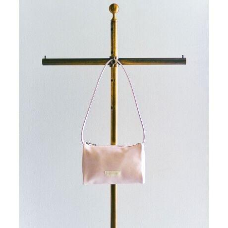 艶感のある素材とフロントのブランドネームがポイントになり、幅広いスタイリングに取り入れやすいバッグです。
