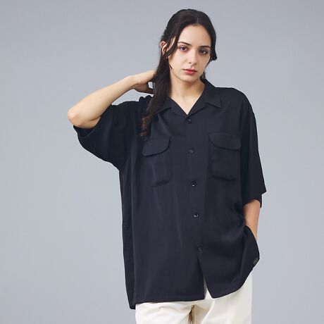 リラックス感のあるシルエットと開放的な襟元が特徴の半袖シャツ。