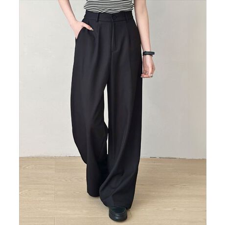 ハイウエストとワンタックで腰回りはすっきり、太ももから裾にかけて自然に広がるラインで上品な印象に。