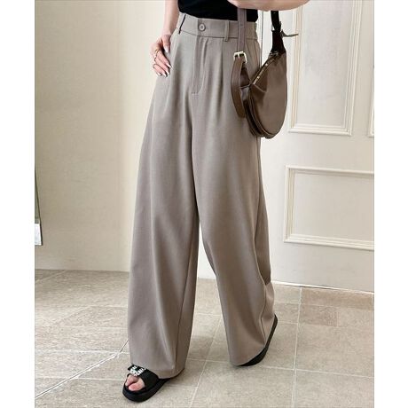 ハイウエストとワンタックで腰回りはすっきり、太ももから裾にかけて自然に広がるラインで上品な印象に。