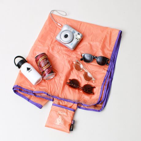 パッカブルポケット付きで、手のひらサイズに収納できるレジャーシート。