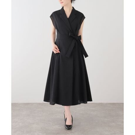 すっきりとしたVネックとウエストのリボンディテールが、女性らしいメリハリのあるシルエットを演出します。