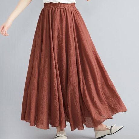自然に生み出されるシワ感を楽しむ大人のフレアロングスカート。