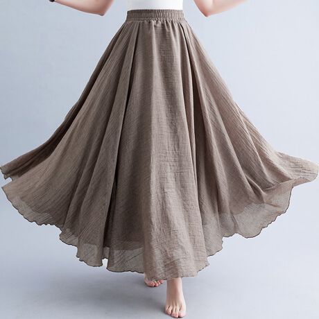 柔らかい生地にウエストゴムではき心地よく、さり気ない透け感でロングの丈でも軽やかな印象に。