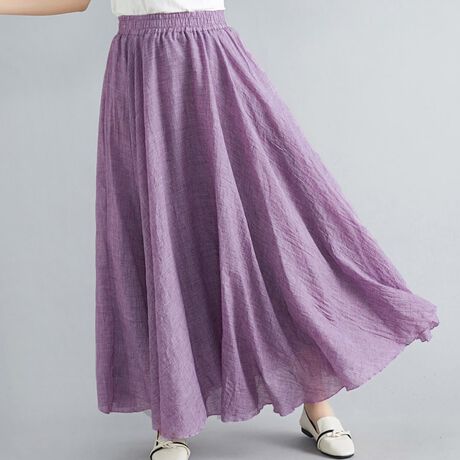 柔らかい生地にウエストゴムではき心地よく、さり気ない透け感でロングの丈でも軽やかな印象に。