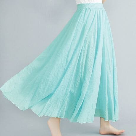 柔らかい生地にウエストゴムではき心地よく、さり気ない透け感でロングの丈でも軽やかな印象に。