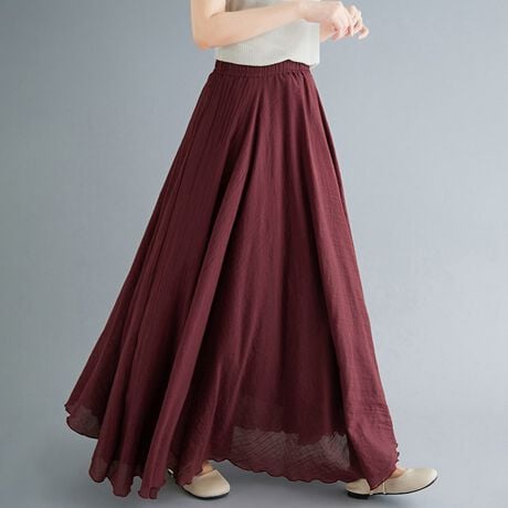 自然に生み出されるシワ感を楽しむ大人のフレアロングスカート。