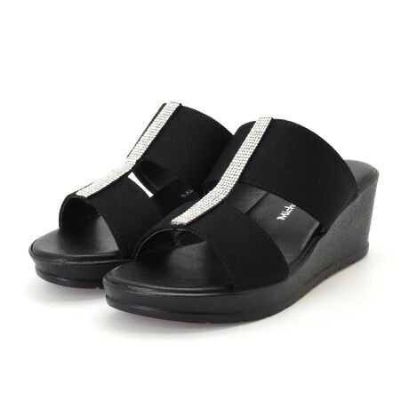 美脚 サンダル きらきら ミュール 厚底 ウエッジヒール 安定感 ダブルベルト レディース
