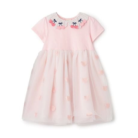 スカート部分のチュール素材で女の子らしい雰囲気を演出。