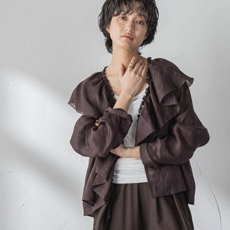 大胆なラッフルカラーが目を惹く、着映えブラウス。