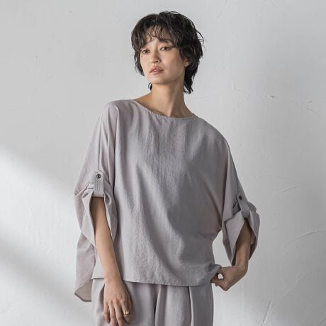 ゆるやかなドルマンシルエットが女性らしい抜け感を演出する、ボートネックブラウス。