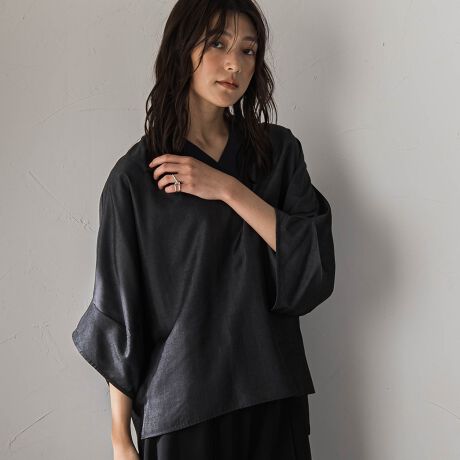 レーヨン混のなめらかなタッチと、落ち感のある軽やかな風合いが魅力。