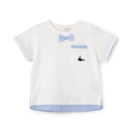 さわやかなストライプと、胸ポケットのクジラ刺しゅうが可愛いマリンデザイン。