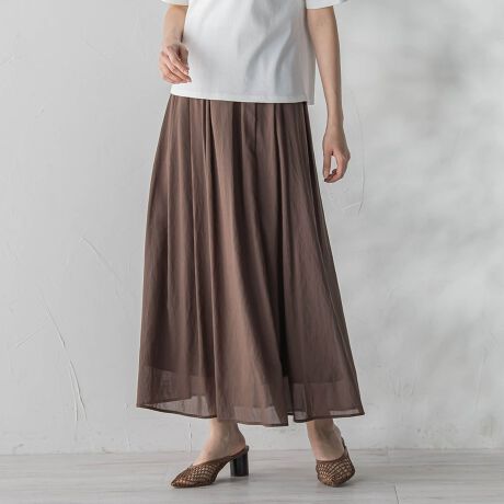 揺れ動くギャザーシルエットがフェミニンなスカート