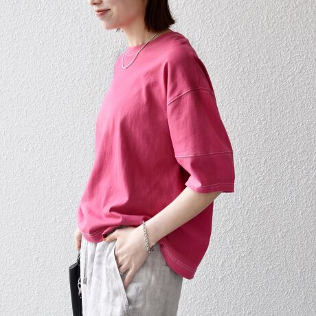 配色ステッチが目を惹くハーフスリーブプルオーバー。